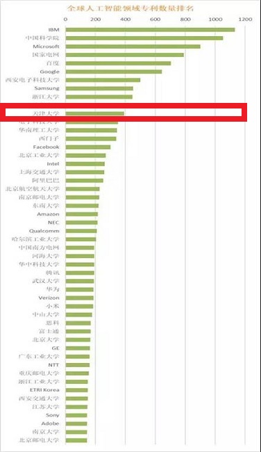 Recently, a retrieval analysis of Artificial Intelligence (AI) intellectual property rights showed that in the field of global AI, among the top 50 of effective patents, Tianjin University is ranked fourth place among colleges and universities.