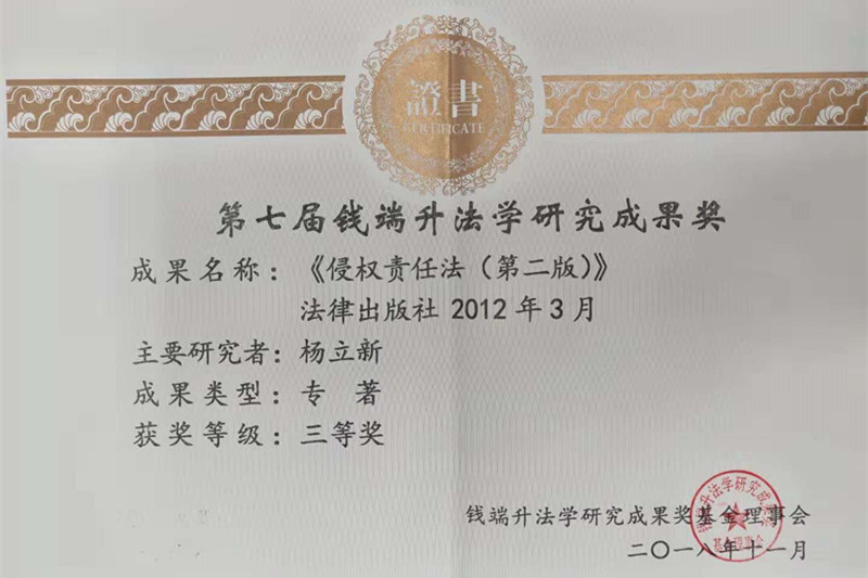 The award ceremony of 7th Qian Duansheng Award for Legal Research as well as the Forum on the Law of China, was held in Beijing on November 25th, 2018.