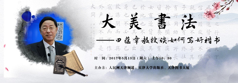On May 13th, 2017, the famous calligrapher, Professor Tian Yunzhang of Nankai University, delivered a speech about how to write regular script well. The speech was sponsored by the People's Daily Online (Tianjin Channel), Tianjin University Press and Tianjin Book Plaza.