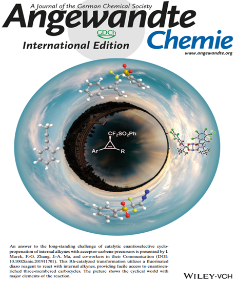 Recently, Prof. Jun-An Ma’s team from Tianjin University’s School of Science reported on RhII-catalyzed enantioselective cyclopropenation reaction of internal alkynes with a masked difluorodiazoethane reagent (PhSO2CF2CHN2, Ps‐DFA). The related work was published on Angew. Chem. Int. Ed. (10.1002/anie.201911701) and selected as Hot Paper and Back Cover for key report.This asymmetric transfor...