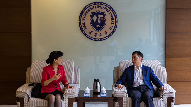 Recently, Tianjin University President Zhong Denghua met with Liu Hui, head of Tianjin Jinnan District and a delegation of Jinnan District government officials.