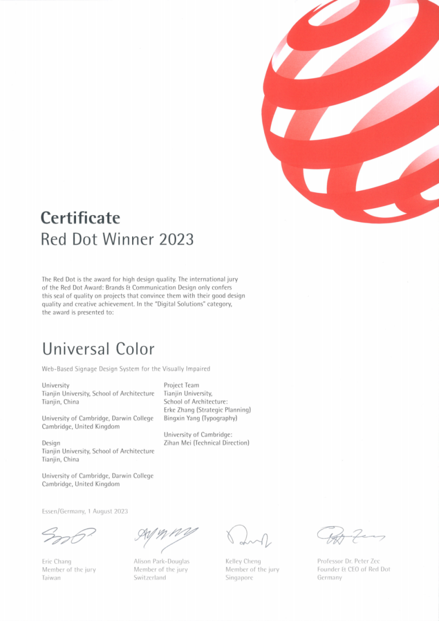 Recently, the design "Universal Color" by a team from the School of Architecture of Tianjin University won the 2023 Red Dot Design Award for Branding and Communication Design Junior Award - Digital Solution.Red Dot Design Award, originated from Germany, as "the Oscars of the design world", was founded by the famous German design association "Design Zentrum Nordrhein Westfalen" in 1955. Every ye...