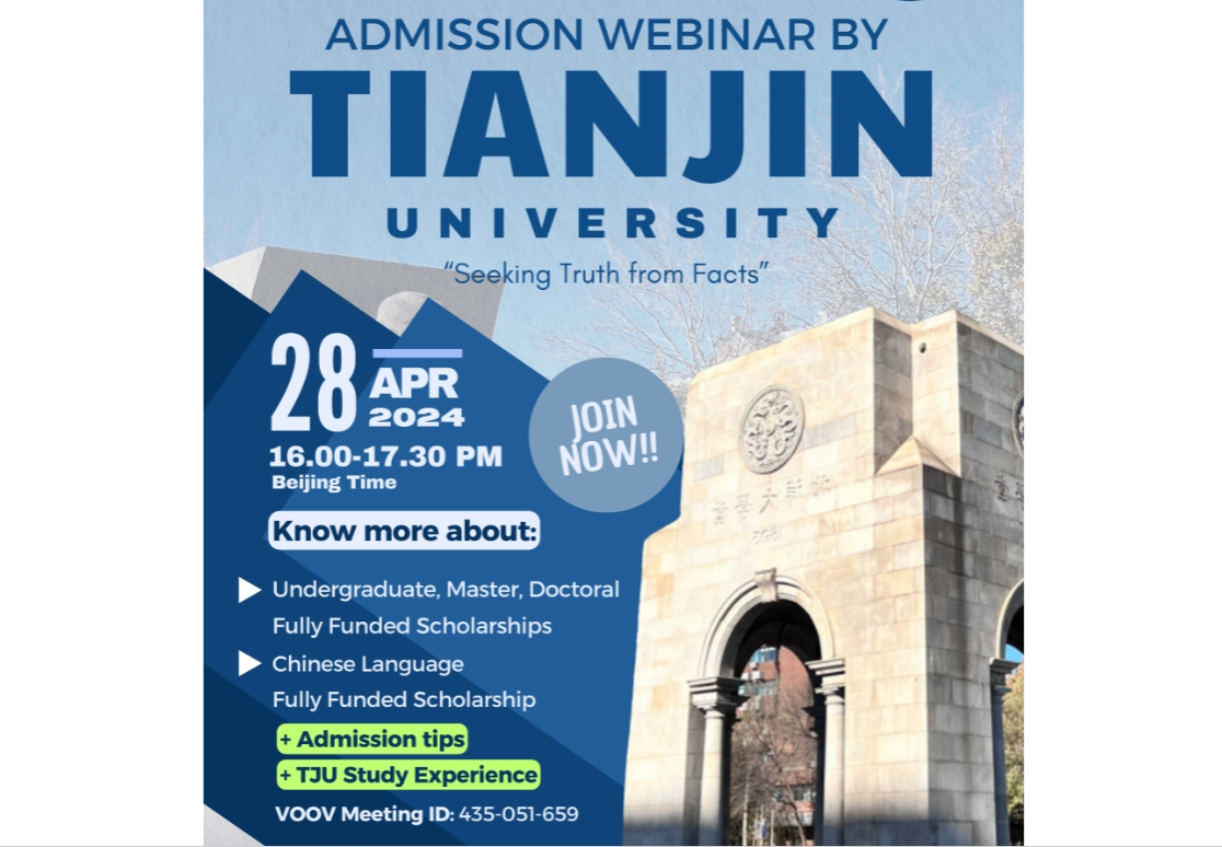 Are you looking for an opportunity to study abroad and learn more about Chinese culture? Welcome to our admission webinar! Tianjin University will be holding an online webinar this April 28. On this webinar, you will know more about:Undergraduate, Master, Doctoral fully funded scholarships;Chinese language fully funded scholarship;Admission tips;TJU study experienceMark your calendars now and...