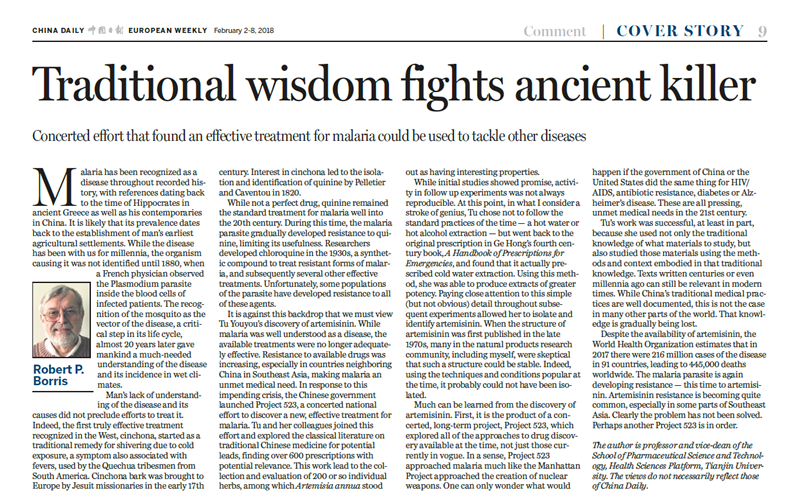 Much can be learned from the discovery of artemisinin. First, it is the product of a concerted, long-term project, Project 523, which explored all of the approaches to drug discovery available at the time, not just those currently in vogue.