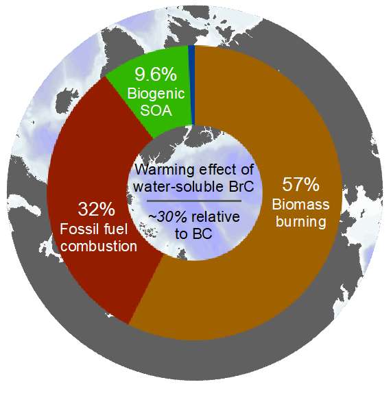 Rapid warming in the Arctic has a huge impact on the global environment. Atmospheric brown carbon (BrC) is one of the least understood and uncertain warming agents due to a lack of observations. This study performed direct observations of atmospheric BrC and quantified its light-absorbing properties during a two-month circum-Arctic cruise in the summer of 2017. Through observation-constrained m...