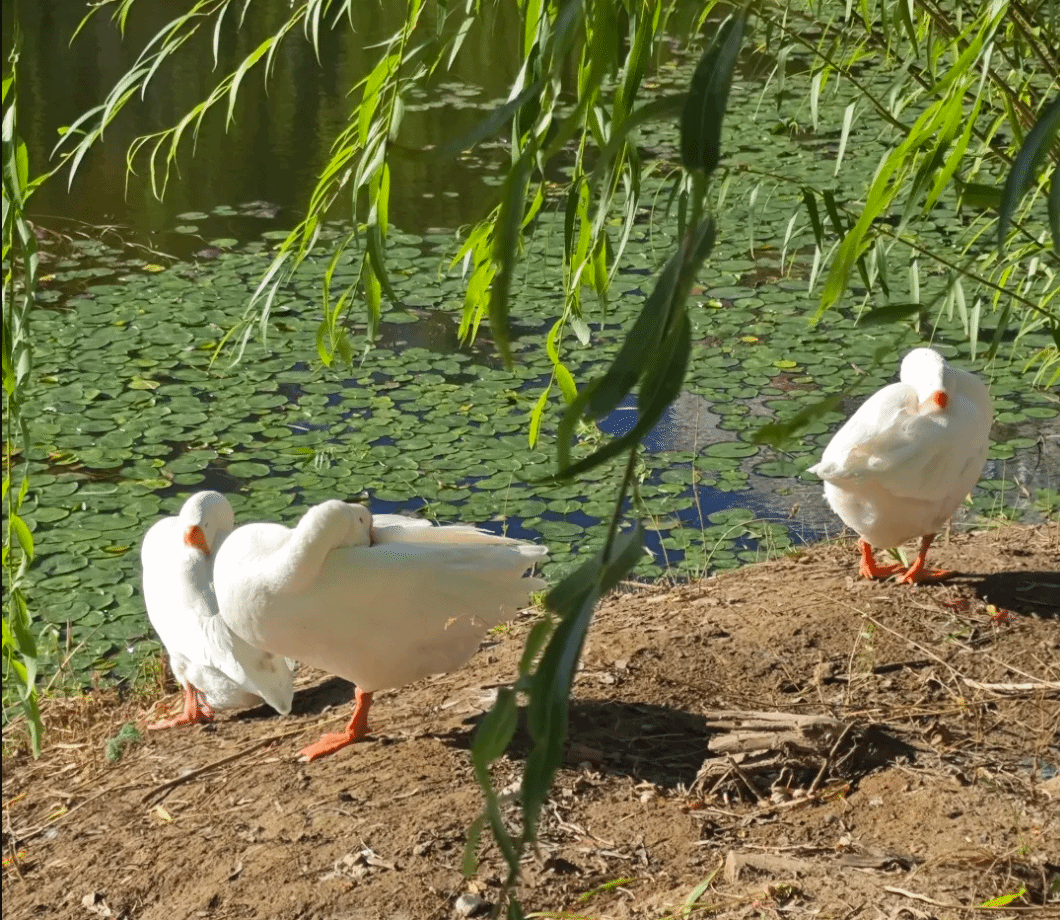 You’ll find these neat ducks by the lake or crossing campus roads in a row — always a happy sight!