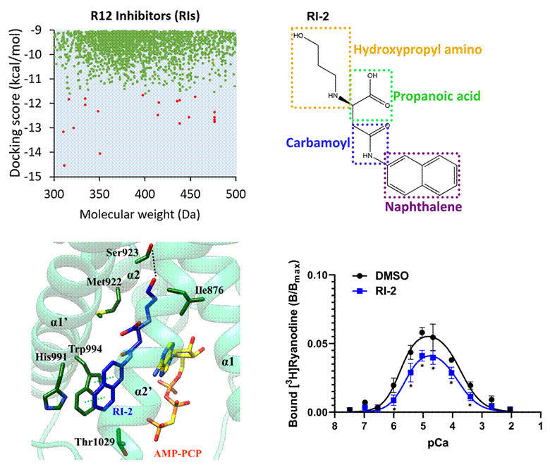 Guided by the structural information, the team performed structure-based high-throughput screening and identified a new inhibitor, RI-2. RI-2 binds the same pocket as DAN/AZU but adopts a distinct binding mode, efficiently inhibiting RyR1 activity. The crystal structure of the RI-2 complex reveals a unique interaction interface, offering a new molecular template for treating RyR channelopathies and developing RyR-targeted green insecticides.
