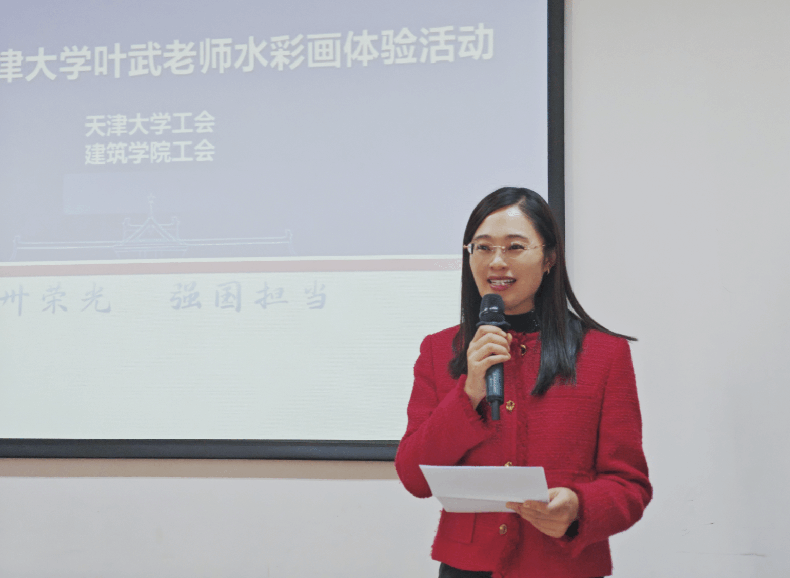 The program opened with remarks from Wen Li, Deputy Secretary of the School of Architecture Party Committee, who welcomed the participants and expressed appreciation to Wu Ye for leading the workshop. Wen highlighted watercolor’s expressive qualities, including its transparency, fluidity and subtle visual charm, and emphasized the value of artistic engagement in easing work-related pressure and enhancing campus culture.