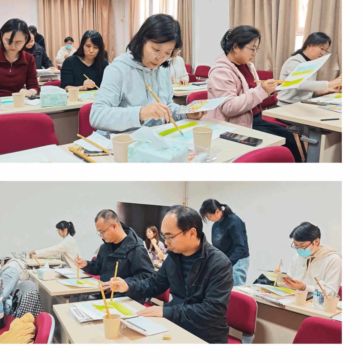 As the session concluded, faculty members shared their artworks, exchanged feedback and took group photos with Ye Wu. The workshop provided a relaxing creative break from daily responsibilities, strengthened collegial interaction and expanded appreciation for the visual arts across the community.