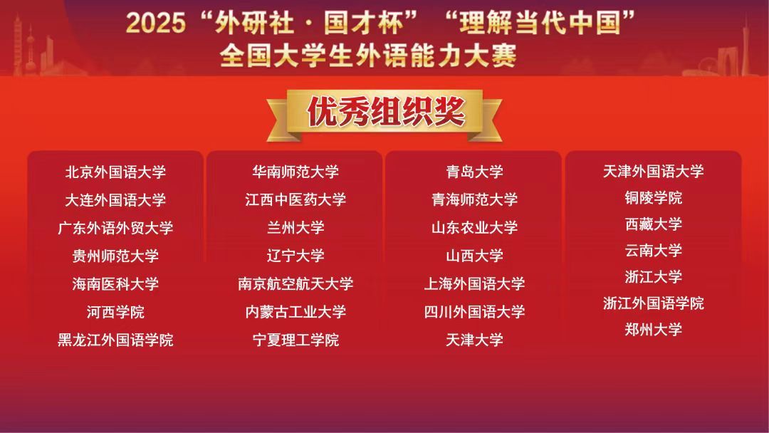 TJU has consistently upheld the educational philosophy of “promoting learning, practice, teaching, and talent development through competitions.” The School of Foreign Languages actively organizes and holds several high-level foreign language events in Tianjin. After multiple rounds of rigorous competition at university and municipal levels, TJU students demonstrated exceptional skills by showcasing China’s development and multicultural charm in English. It fully demonstrates their youthful responsibility of understanding China and communicating with the world, and builds a bridge of friendship for exchanges, cooperation, mutual learning. For its outstanding organizational contributions, TJU received the contest’s Outstanding Organization Award.