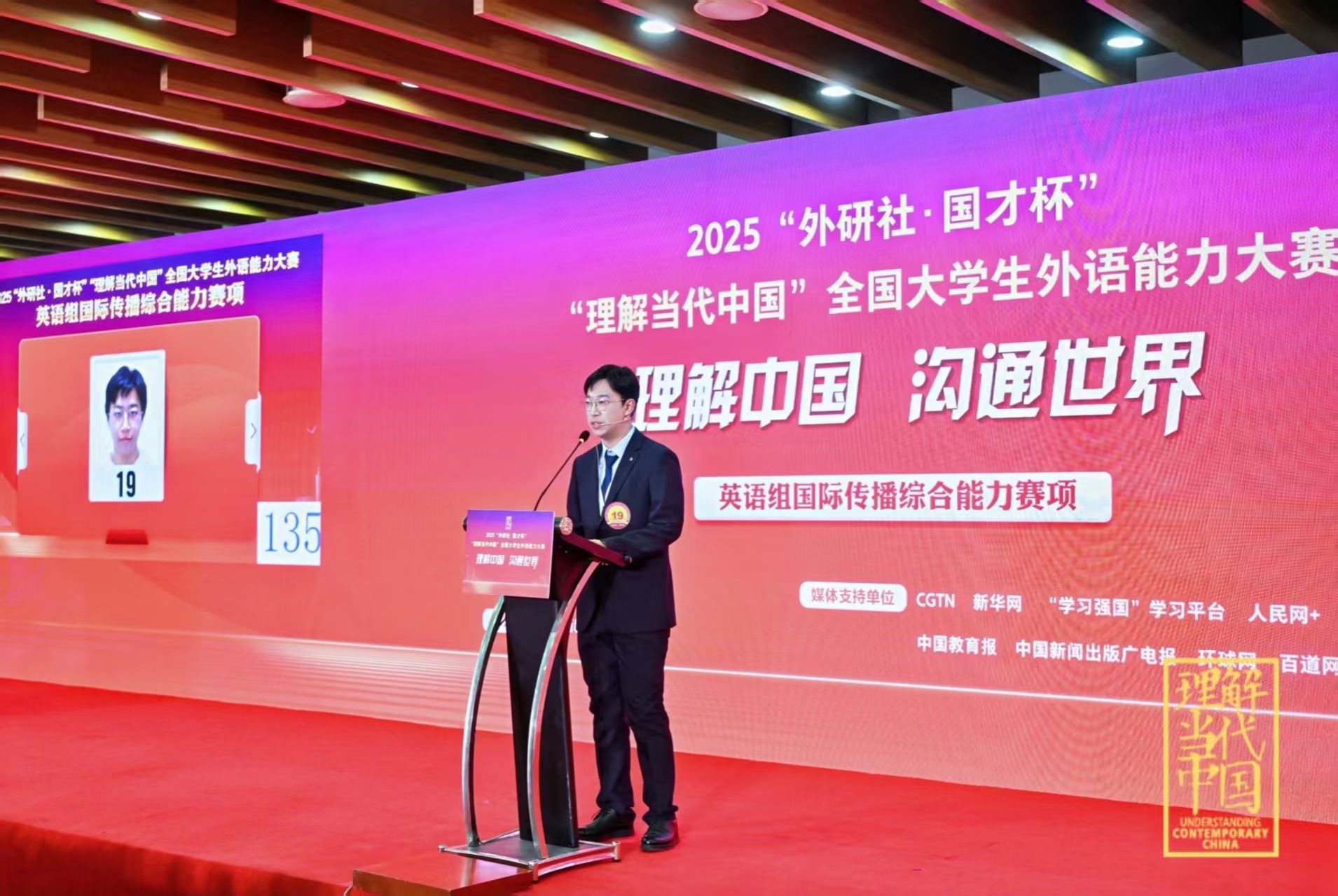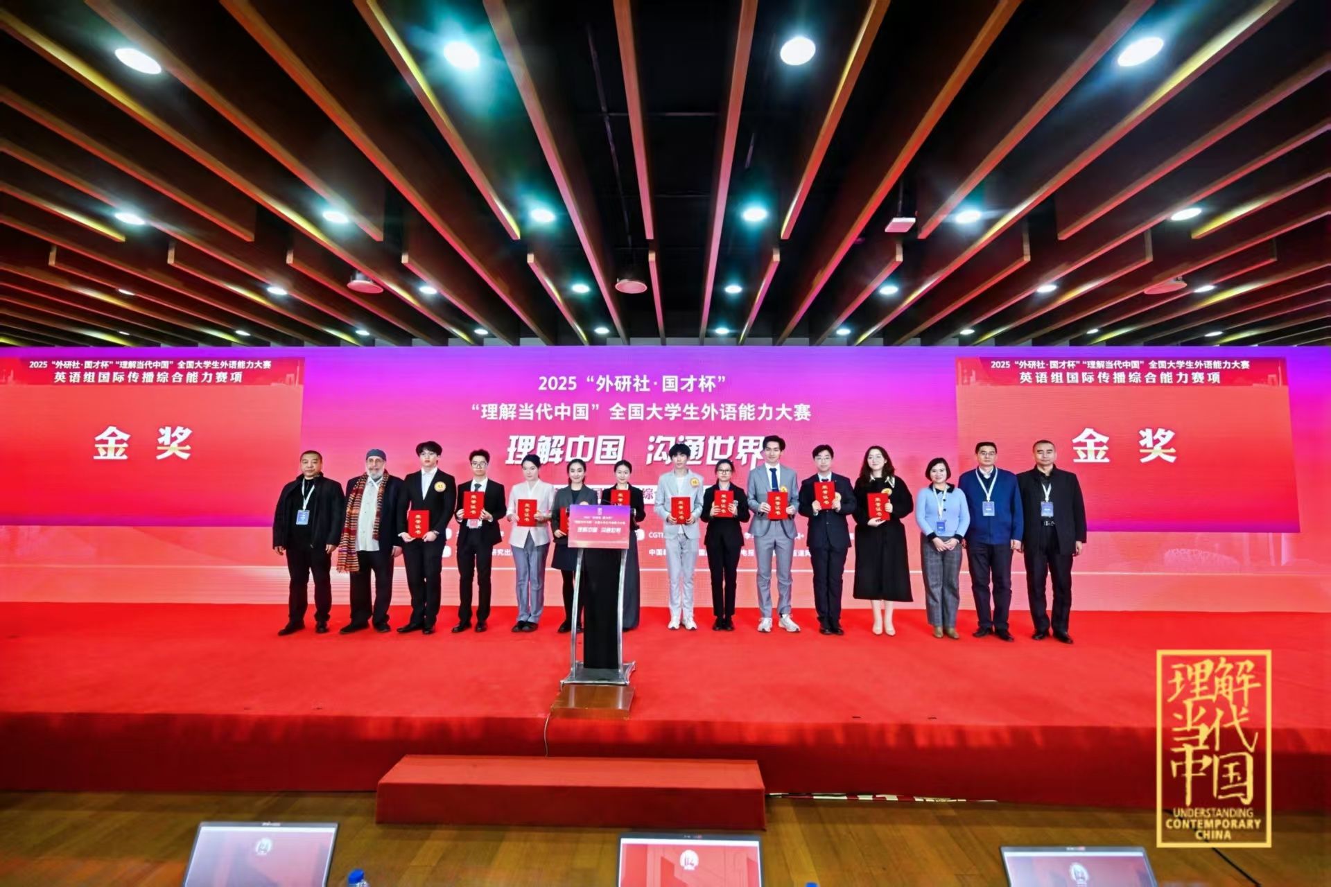 Beijing, Dec. 8, the 2025 “FLTRP·ETIC Cup” National College Foreign Language Contest, themed “Understanding Contemporary China,” concluded its national finals. Students from Tianjin University (TJU) competing on the same stage with outstanding students from various universities across the country, excelled in four English categories—comprehensive international communication, translation, interpretation, and short video. They secured a total of 15 national awards: 2 golds, 4 silvers, and 9 bronzes, which marks a breakthrough in gold medal achievements for the university.