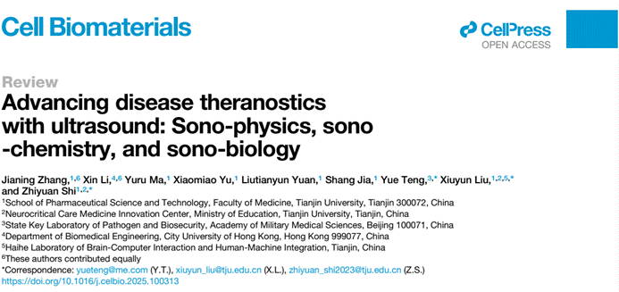 This study, titled “Advancing Disease Theranostics with Ultrasound: Sono-physics, Sono-chemistry, and Sono-biology” was published in Cell Biomaterials with Tianjin University as the primary affiliation. Key contributors include Ph.D. student Jianing Zhang, Master’s students Xiaomiao Yu, Liutianyun Yuan, and Shang Jia.