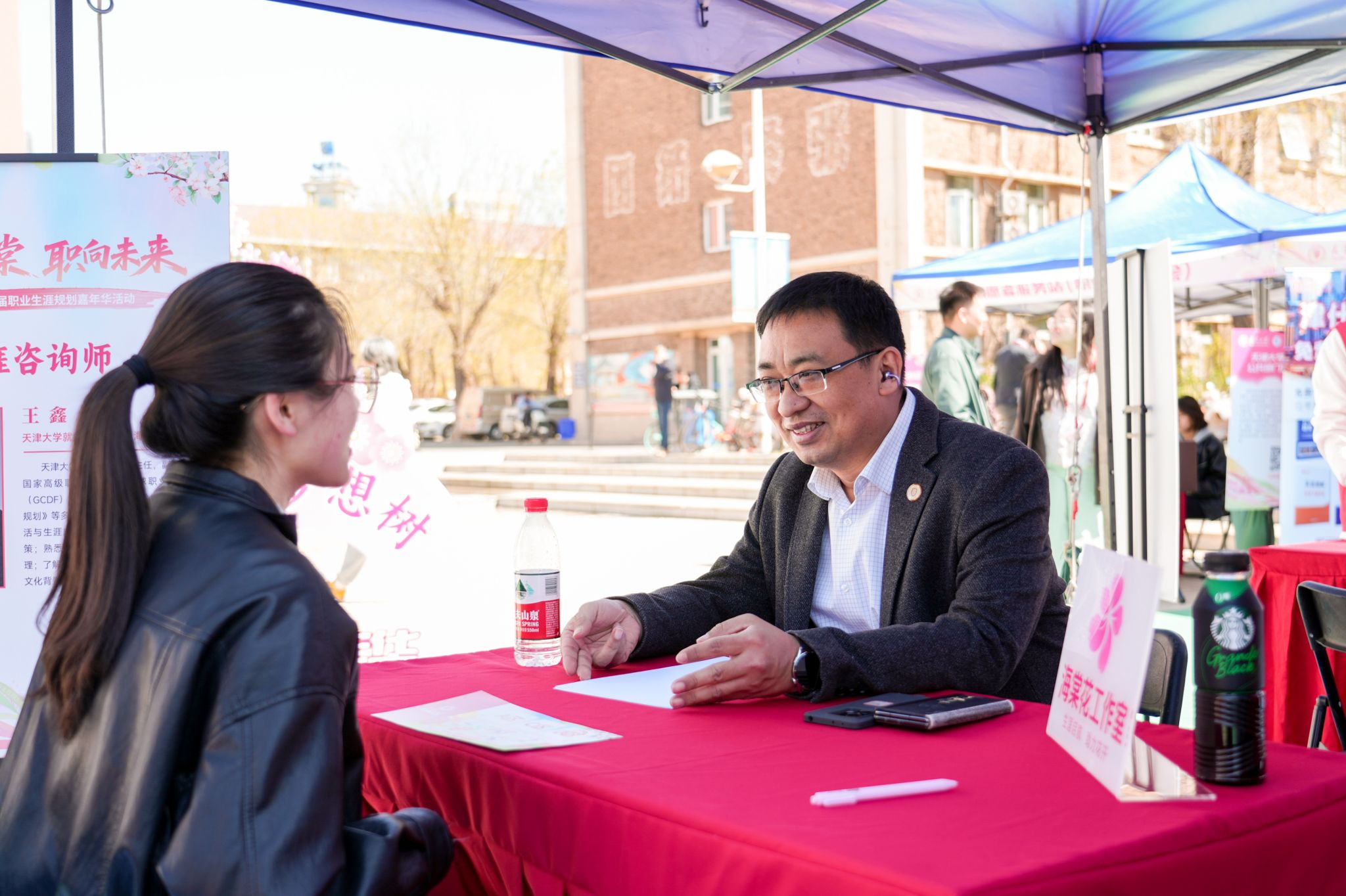 The expert consultation zone gathered more than ten senior career planners from the university, enterprises and other universities in Tianjin, offering one-on-one guidance on career positioning, career planning, employment policies, resume polishing and interview strategies. The policy consultation zone covered grass-roots employment, job-hunting laws and further education planning, with university instructors answering questions on site and encouraging students to align personal ideals with national strategic needs. The city promotion zone invited officials from Xiamen Municipal Government to introduce local talent attraction policies, building a bridge between local governments and campus talents.