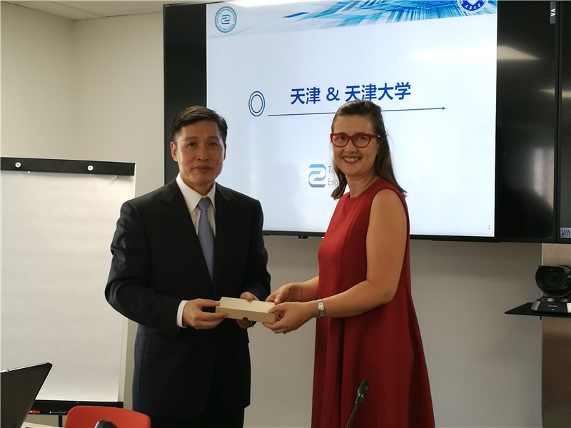 On September 4, Lin Bixi, Secretary General of the Comité France Chine, Cui Wen, a director, and other representatives visited the headquarters of CTI and had a meeting with the delegation from Tianjin University. President Zhong Denghua hoped that through the platforms of Comité France Chine, the communication and cooperation with French enterprises could be further strengthened in order to offer the students of TIEI more opportunities and choices of practicing and gaining internships in French companies. He also indicated that TIEI would be the bridge for the communication and cooperation between Chinese and French companies, and welcomed Comité France Chine to set up agencies in China, which could significantly promote cooperation.