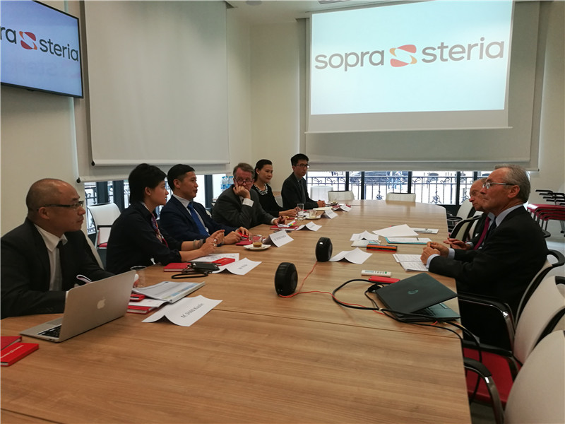 On September 5, President Zhong led the delegation to Sopra Steria, which is famous in Europe. The delegation was welcomed by Director Jean Mounet, and Chairman Bouffard at Sopra Steria.