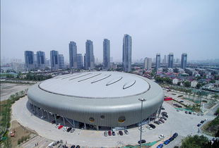 The top steel structure of the Swimming and Diving Hall partially adopts spaced steel trusses spanning 64 meters. A total of 12 trusses were installed, each spaced 8 meters apart. The structural system of the hall is formed by a rigid steel frame system, and spaced steel trusses whose outer ring is formed by a steel frame and steel inner ring truss. The steel structure is supported by the lower concrete main structure.