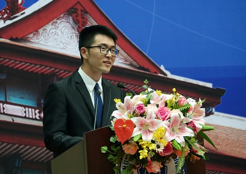 Zhao Tianhui delivered a speech on behalf of students at the University.