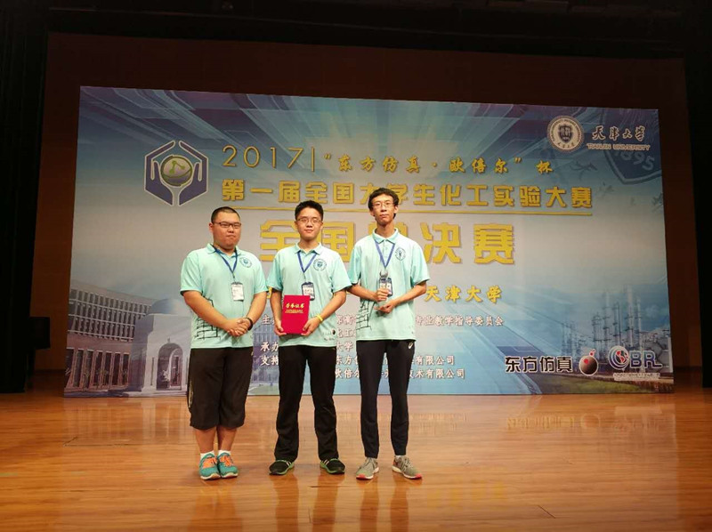 In July, the three students first won the Grand Prize in the qualifying tournament for North China. After the tournament, through continuous review and training, their comprehensive abilities were further enhanced. The three students achieved good results in the competition of the theory of chemical engineering principles, experimental operation and simulation showing a calm attitude and their reasonable arrangements, which showed outstanding personal qualities and team spirit. Finally, they won first place with the highest scores in the Competition.