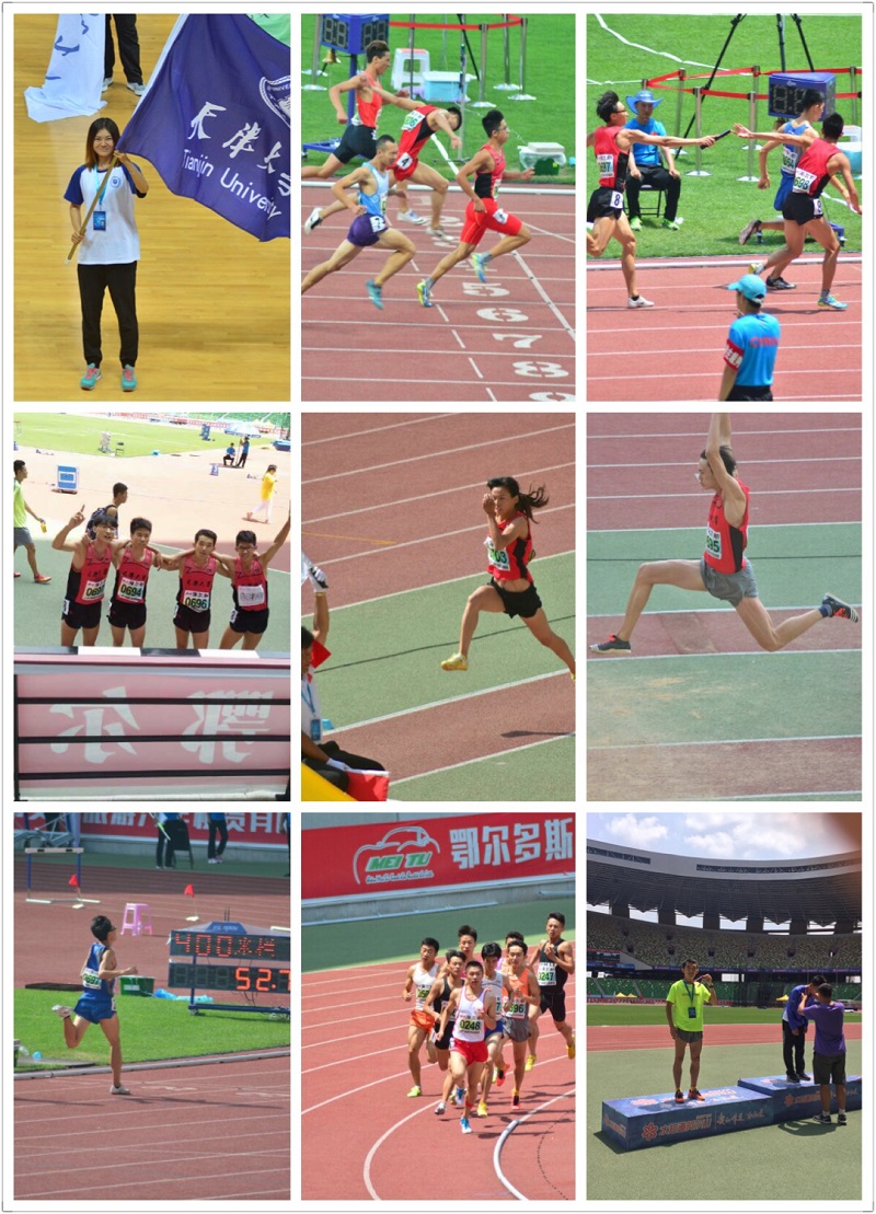Xi Zeng won the men's A 800m silver medal and 1,500m bronze medal; Zhao Sa came seventh in the men's A400m hurdles competition; Zhou Yuanpeng came seventh in men's A200m competition; and the relay team of Yao Shufan, Xi Zeng, Zhao Sa, Zhou Yuanpeng from College of Management and Economics made it to the final of men’s 4×100 relay and came eighth and at the same time broke the TJU record.