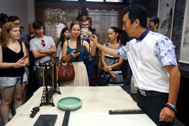 Tianjin Ancient Cultural Street presents more than just local souvenirs. It can also be an ideal place for people who are eager to learn Chinese painting. On July 15th, 13 students from Slovakia Agricultural University attending a summer camp held by TJU and the Confucius institute had their wish come true during their visit to Ancient Cultural Street.