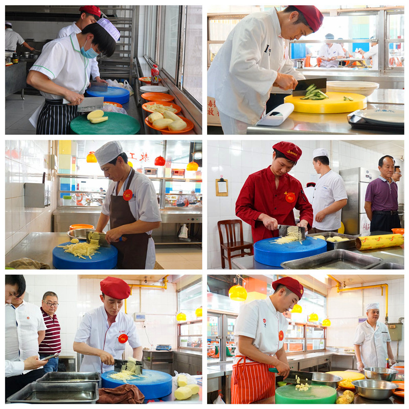 The contest was in two parts: knife skills and cooking skills. Participants selected from each canteen were divided into ten groups. In the first knife work part the contestants were asked to cut potatoes into shreds, chips, and dice displaying their consummate skills and high artistry. In the cooking part of the contest, all the contestants cooked their favorite mouthwatering dishes. With on-site appraisal by the judges, the top three individuals and the top three groups were selected and awarded prizes.