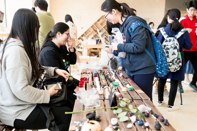 The Handicraft Stores consisted of Industry Design, Green Lemon Studio, Brother Cai's Badge Store, Mini Workshop, Craftsman Studio, and more. Many elaborate handicrafts were displayed on the stalls one after another, and they instantly became a hit with the students.