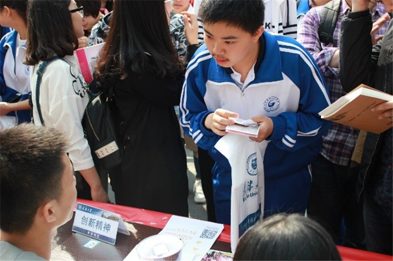 Meanwhile, advisors at the university also answered questions regarding admission and enrollment from parents and students. According to Mr. Fang, who worked at the University Admission Committee, over 20 middle schools in Tianjin, Xinhua Middle School and the 1st Middle School included, were invited to the university and all the students and parents will be provided with materials containing information related to TJU.