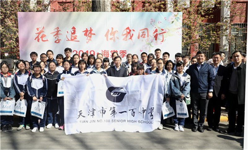 Students from Tianjin No. 100 High School tour around the campus and take a phot with TJU Party Secretary Li Jiajun
