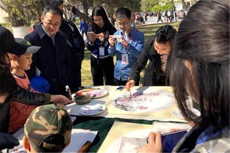 Ten folk culture craftsmen were invited to convey the charm of intangible cultural heritage. Old grannies, little kids and young students were all intrigued with traditional folk arts like Yang Liuqing's Woodcut New Year Pictures, circular fan painting and kite making. “It is fascinating to see and to experience the traditional arts. It’s like talking to the ancient and communicating across time and space.” Liu Xiaomei, a sophomore student said. This is the second year she has attended the crabapple blossom festival.