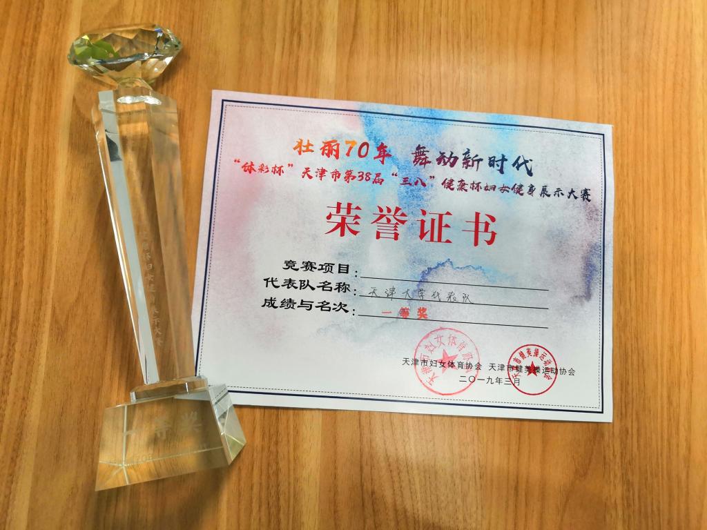 On March 31, the 38th Women's Fitness “Tianjin Sports Lottery Cup” Competition was held in the gymnasium of Tianjin University of Science and Technology. The Tianjin University team won the first prize with the program "Love Each Other".
