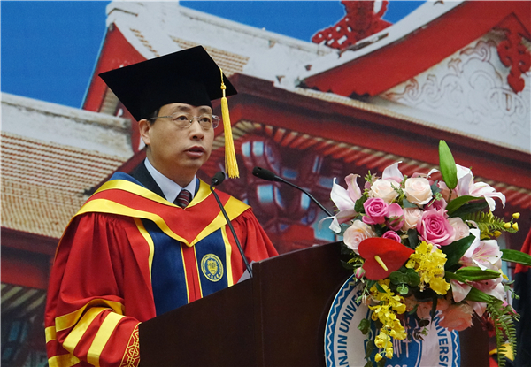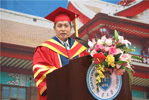 ENNGroup Chief Technology Officer and a representative of TJU alumni Li Jinlai, shared the story of his studies and struggles at the ceremony and expressed his warm congratulations and best wishes to the graduates and his great respect to the teachers, students and staff of his alma mater. Li said that graduates should take up the responsibility of the times, challenge themselves and dare to explore new fields. “Being at a crucial stage of realizing the great rejuvenation of the Chinese nation, we should combine our personal struggle with the future of our country, the destiny of the nation and happiness of people.” He encouraged graduates to "be ambitious, innovative and responsible TJU students who contribute to the motherland and society in their respective jobs, rising to the expectations of TJU and the times".