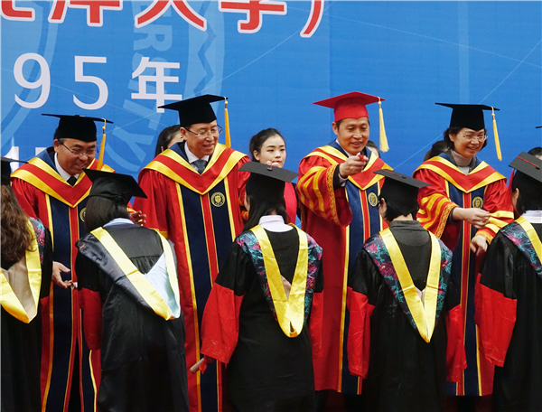 The doctoral graduates first walked on the rostrum in turn, then the Master's students. School leaders and the Degree Committee members bestowed the degrees for them and tossed their tassels.