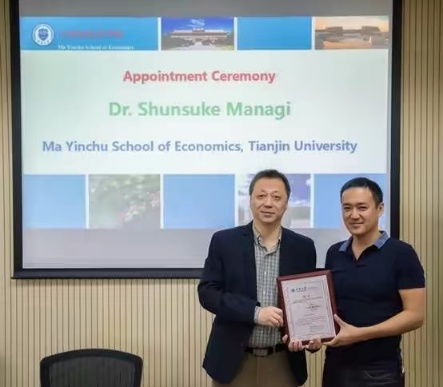 Professor Zhang Zhongxiang, Dean of Ma Yinchu School of Economics and Director of the Academy and Professor Shunsuke Managi of the Institute made a brief introduction to the background of the workshop, as well as the Academy and the Institute respectively. They wished to take this opportunity to further their cooperation. Later, Professor Shunsuke was awarded the title of Adjunct Professor of Ma Yinchu School of Economics. Professor Zhang highlighted the major academic achievements of Professor Managi in the awards ceremony.