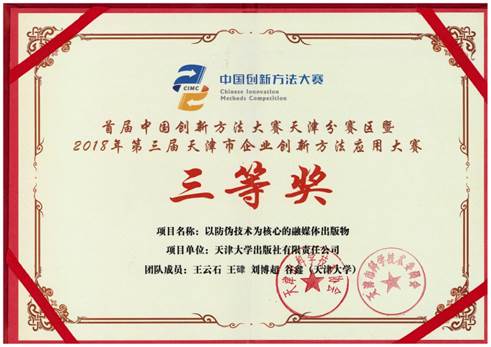 The Tianjin University Press Team led by Wang Yunshi, Deputy Director of the TJU Press, entered their Independent Intellectual Property Project: convergence media publications with core of anti-counterfeit technology. The team won the third prize after the theoretical test and presentation competition.