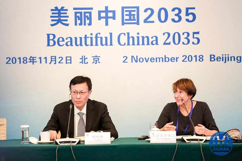 On November 2, 2018, Open forum “Beautiful China 2035”, co-organized by the Research Institute of China Green Development, Tianjin University and GIZ, was successfully held at the Diaoyutai State Guesthouse in Beijing during the China Council for International Cooperation on Environment and Development (“CCICED”) Annual General Meeting 2018. Mr. HU Baolin, honorary dean of Research Institute of China Green Development of Tianjin University, Special Advisor of the CCICED and former Director of the Office of the State Council Three Gorges Project Construction Committee, and Ms. Maria Krautzberger, Member of the CCICED and Director of the German Environment Agency presided over the forum.