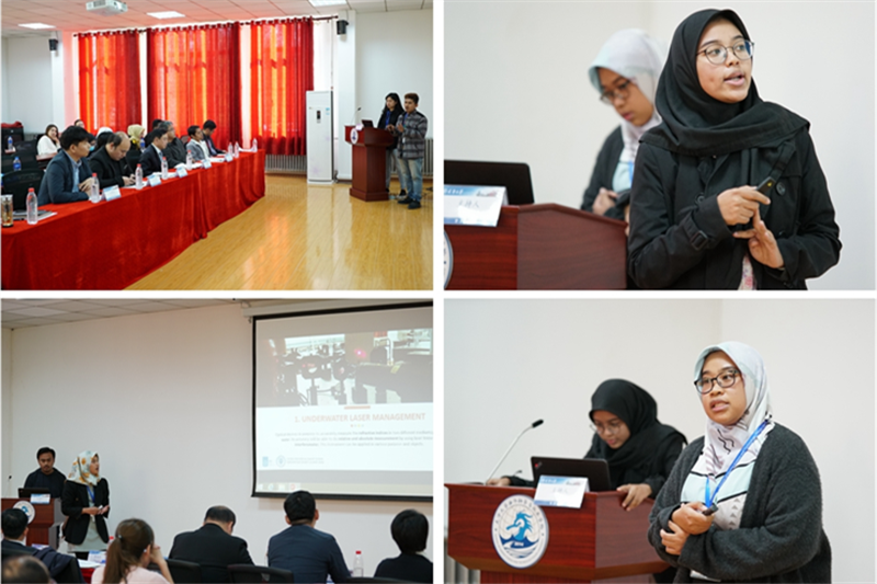 At the summary meeting, eight students from the universities of Indonesia were divided into four groups and showed what they had learned in detail and expressed their learning experience. The judges commented on the students' reports and interacted with the students. Finally, Zhang Anmin made a summary speech and commended the students' studies and conscientious attitude. The following closing ceremony was presided by Gong Le. First, everyone reviewed the whole process of this program through short video. Then, the leaders of Marine School awarded the program completion certificate and excellent student certificate for each student. Wang Jun gave a concluding speech. In her speech, she hoped that students could apply what they learned from this training to their future study and life, and keep in touch with Chinese classmates and teachers for more in-depth study and communication.