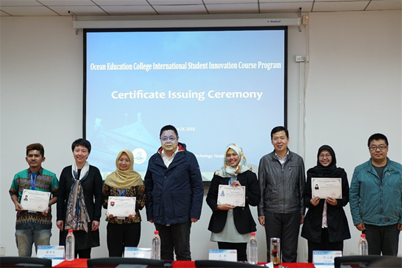 On October 24, 2018, under the framework of "China-ASEAN Smart Ocean Center", the closing ceremony of “Ocean Education College International Student Innovation Course Program” sponsored by School of Marine Science and Technology, Tianjin University and the summary report of this program was held in Room 319, Building No.8. Dean of the school of marine Zhai Jingsheng, Party Secretary, Ling Guowei, deputy party secretary, He Liqian, vice dean Wang Jun and Gong Le, director of the department of Marine technology Zhang Anmin and mamy teachers and students from the school attended the summary meeting and closing ceremony.