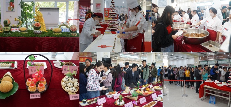 The TJU Logistics Department and the Zhong Kuai Catering Company held the Second Canteen Food Festival at Peiyangyuan Campus on October 17, aiming to enhance communication between students and dining hall staff as well as improve the service of the canteen. Four national super-level chefs and sixteen national high-level chefs from the company were specially invited to prepare the food. More than 50 kinds of specialties with Zhong Kuai characteristics and cakes of both western and eastern styles, some of them sculptured artistically, were served for free to faculty and students. The activity attracted more than 8,000 students and teachers as a whole and was well received.