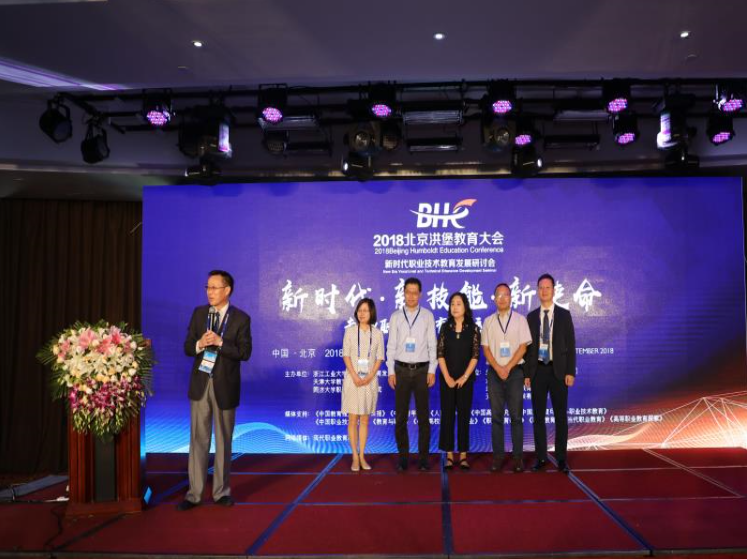 On Sept 15th to 17th, the 2018 Beijing Humboldt Education Conference New Age Vocational and Technical Education Development Seminar was held jointly by the Tianjin University Education College, the Tongji University Vocational and Technical Education College, and Zhejiang University of Technology’s China Vocational Education Development and Evaluation Institute. More than 100 people from over 20 enterprises participated in this meeting, including Member of the Party Group of China Vocational Education Association, Deputy Director General Yang Nong, Secretary General of the National Education Advisory Committee, and former Director of the Education Development Research Center of the Ministry of Education. Yan Guangfen, dean of Tianjin University’s School of Education of, Pan Haisheng, deputy dean, and several teachers and students attended the meeting.