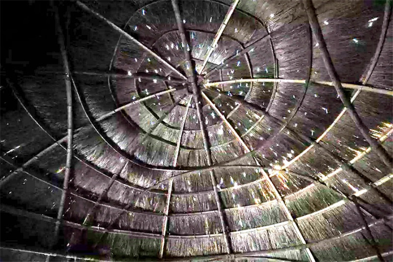 The work "Fluorescent of Xia Mu Tang" by joint team of Syracuse University and Tianjin University was inspired by Monet’s work “Haystack” and Van Gogh’s “Starry Night”. Using local materials, it designed a special architecture where people will see starlight and fireflies whenever they look up at the rooftop inside the room.