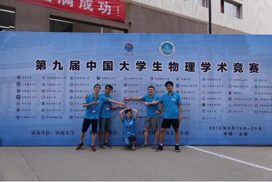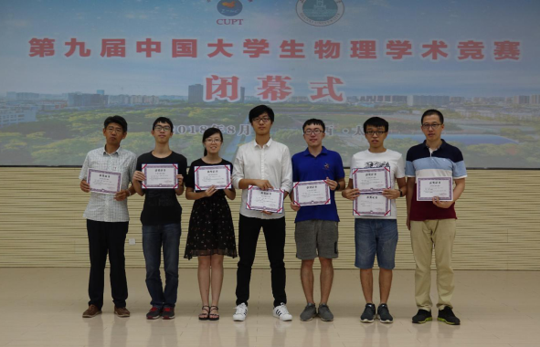 The 9th China Undergraduate Physics Tournament was held in Shanxi University from August 15 to 19. The Tianjin university team of undergraduates Li Renyun, Bai Yiming, Huo Jierong, He Lidan, and Lu Shengyue, won the first prize after five rounds of tough competition. Bai Yiming, won a best performance prize in the competition.
