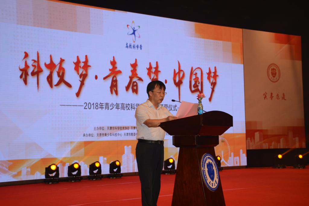 On July 16, sponsored by the China Association for Science and Technology, Ministry of Education and supported by the Chinese Academy of Sciences, the 2018 College Youth Science Camp, Tianjin Branch, Opening Ceremony was held at Qiushi Hall, Tianjin University. The event was organized by the Tianjin Science and Technology Association, the Tianjin Education Commission, Tianjin University and Nankai University. Gong Ke, Executive President of the Chinese Institute of New Generation Artificial Intelligence Development Strategies, Lu Shuangying, Vice Chairman of the Tianjin Science and Technology Association, Sun Huiling, Deputy Director of the Tianjin Education Committee and Zhang Fengbao, Vice President of Tianjin University attended the opening ceremony. 440 high school students from all over the country participated in the opening ceremony.