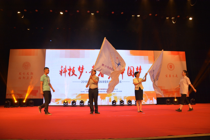 At the opening ceremony, Zhang Fengbao delivered a welcoming speech on behalf of Tianjin University and Nankai University. He pointed out that the with youngsters stronger, the country becomes more powerful; with science more advanced the nation becomes more powerful. He hoped that the students cherish this opportunity, establish a sense of innovation through a week of study and life, cultivate innovative ability and carry forward the scientific spirit of daring. Xie Zexiong, an Associate Professor at the School of Chemical Engineering and Technology at TJU and author of the science cover paper, gave a “science lecture” to all campers in the field on synthetic biology and genome research. The synthesis of genomes marked the beginning of human life research on the nature of biology and human beings and began the process of "designing life, recreating life and reshaping life." He described his journey from a high school student to Tianjin University to start his academic research career and encouraged campers to pursue their own research interests. Lu Shuangying, and Sun Huiling awarded the flag to the 2018 Tianjin Science Camp and announced the official opening of the sixth Tianjin Youth Science Camp.