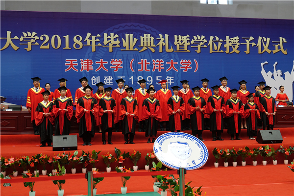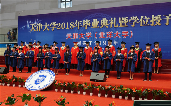 Before the closure of the ceremony, all the graduates sang the university anthem, Ph.D. graduates and Master graduates then went onto the rostrum in turn to receive degrees from the university administrators, Academic Committee representatives and leaders from the different schools of TJU.