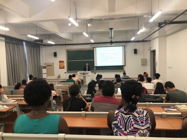 Jinming Duan, a Professor from University of South Australia, gave a lecture on Water and Public Health Engineering: A brief history and challenges for the future. He started with the origin of water environmental engineering, introducing its history and development status. Over the next five days, Jinming Duan, Robert Crocker, Ning Gu, and Jayant Keskar gave a series of courses on the academic research status of water environmental engineering, waste disposal and the recycling economy, which were popular with students.