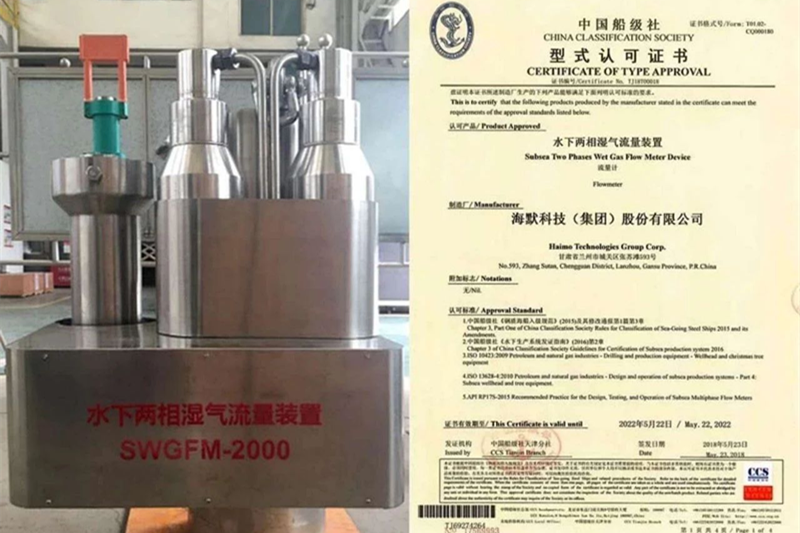 The device has reached the international advanced level in the key technical indexes such as design pressure, temperature, water depth, gas content range and measurement accuracy. Subsea two phases wet gas flow meter device is the key equipment in the development of deep-sea oil and gas field, and its successful development breaks down the foreign technical barrier, which has great practical significance for the localization of the key equipment in the deep sea in China.