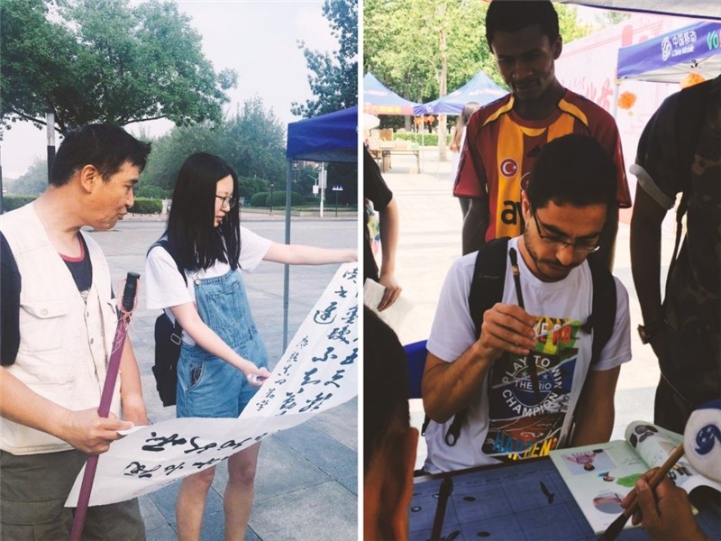 Zhao Xuan from the Wang Xuezhong Institute of Arts at the Tianjin University fashioned bamboo and landscapes on the spot. Some students began to draw their own pictures with pens and Chinese paintings slowly emerged on the paper.