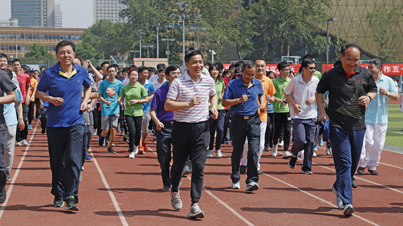 After the openning ceremony, university leaders and staff representatives joined students to run together to celebrate the openning of the track and field event.