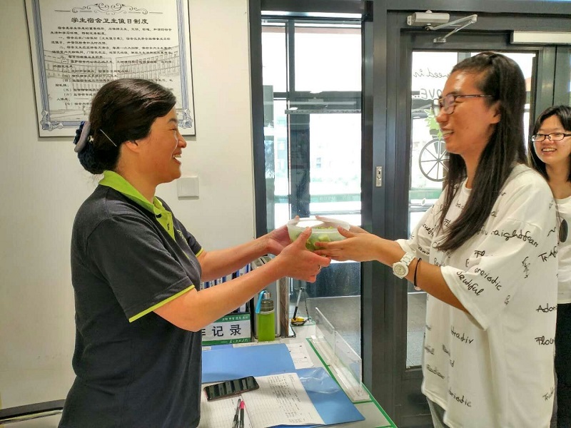Tianjin University has been concerned about students’ physical and mental health and noticed that many students had bad habits including staying up late at night, not eating breakfast or fruit, and not doing enough exercise. To enhance students’ awareness of health and to promote their full development, TJU decided to host the Fruit Project in 2002. Twice each year, during spring and autumn, TJU provides free fruit for students to remind them to pay attention to their health and to eat a balanced diet.