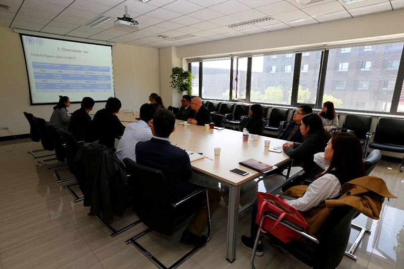 Assistant dean Prof. Jiao Kui and Associate Prof. Gao Weiguo, both responsible for research affairs, together with several young teachers from the Department of Mechanical Engineering, met with the delegation.